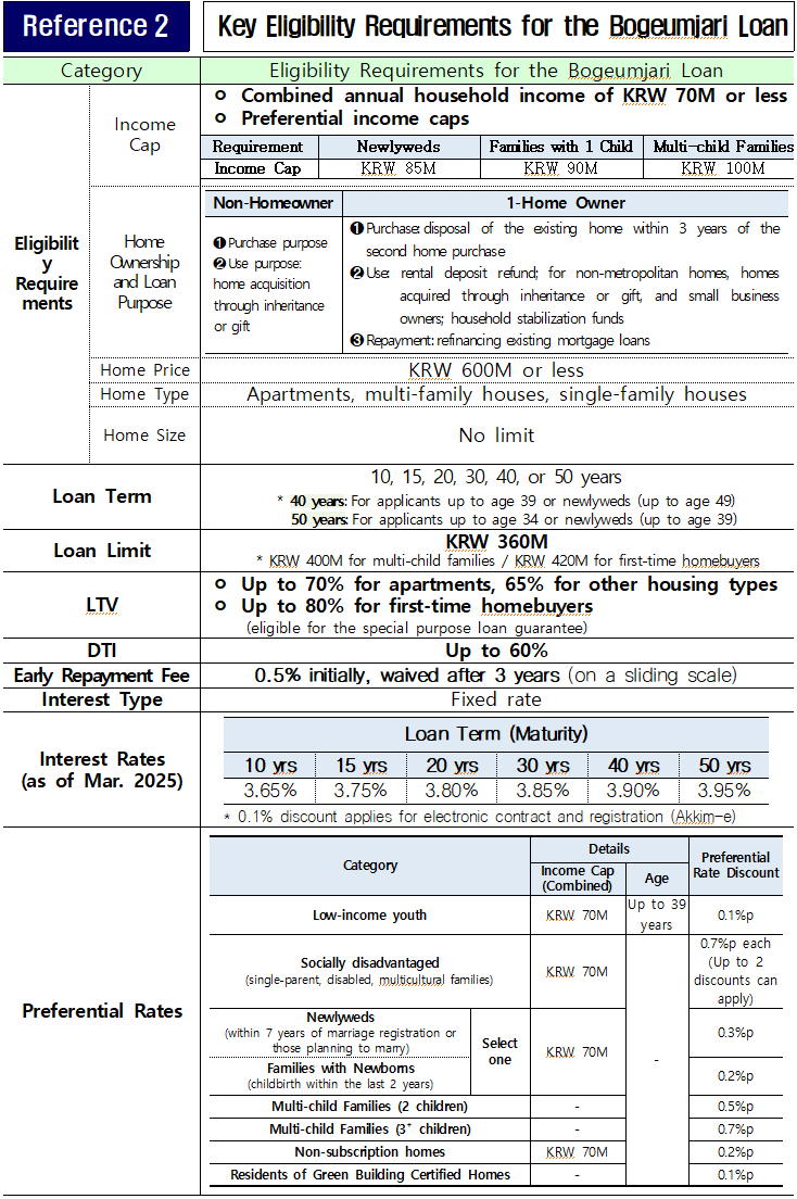 2. Key Eligibility Requirements for the Bogeumjari Loan