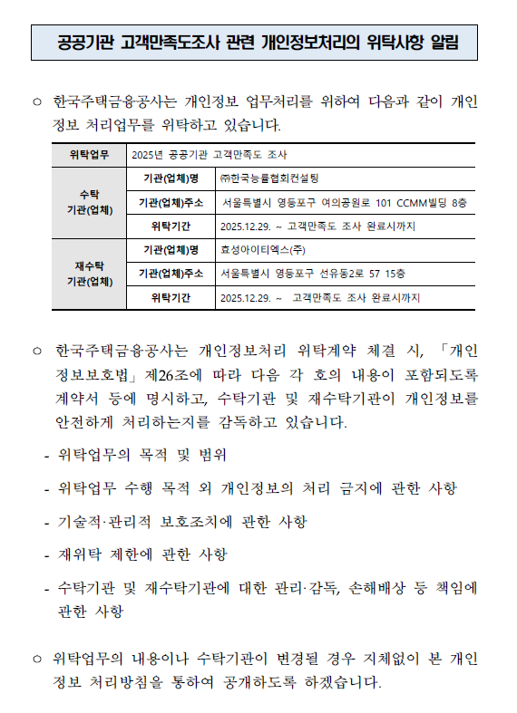 2025년 공공기관 고객만족도 조사 관련 개인정보처리 업무위탁사항 안내