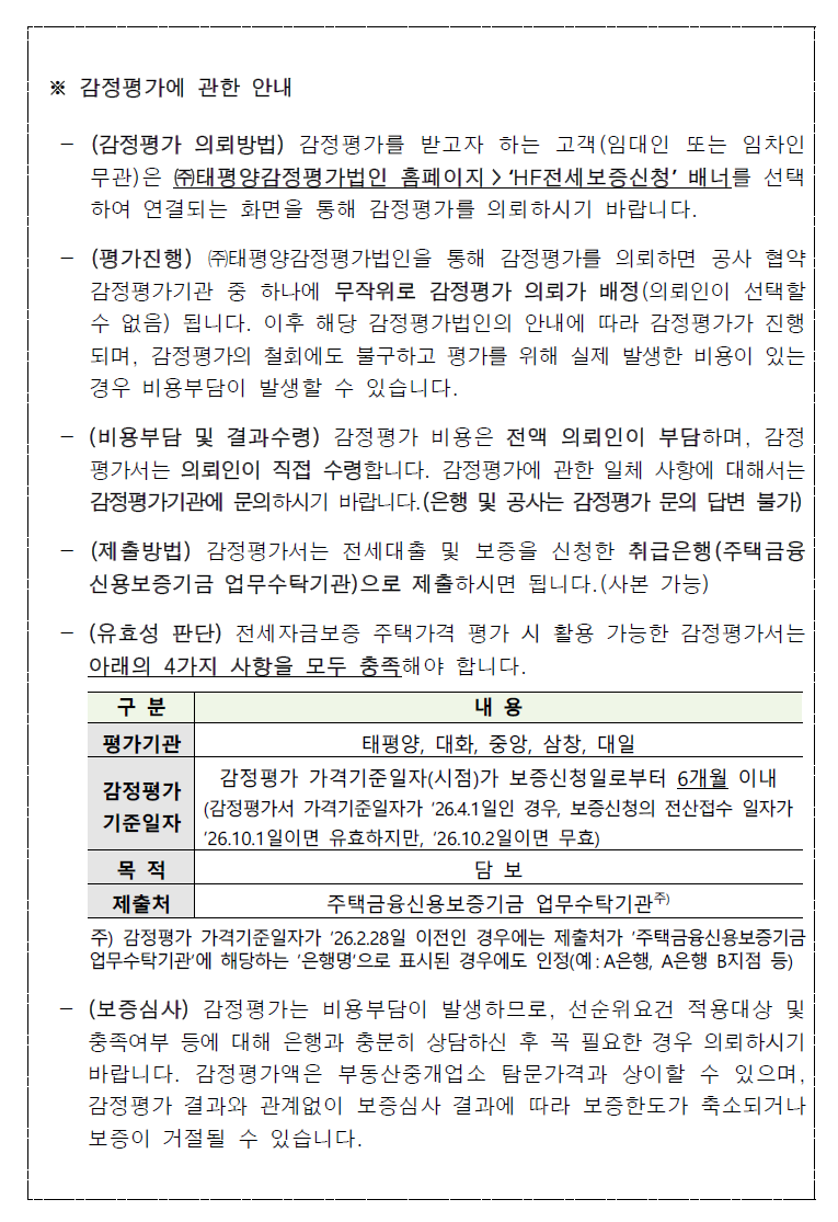 전세자금보증 감정평가법인 변경 안내