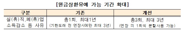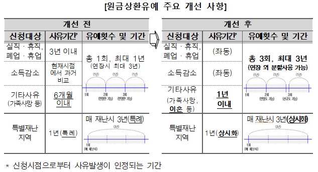 원금상환유예 기존 1회에서 3회(최대 3년간)로 확대, 분할사용도 가능