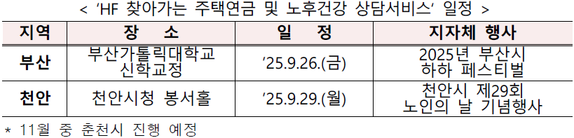 - 부산·천안 지자체 행사에서 주택연금 상담·건강검진 서비스 제공